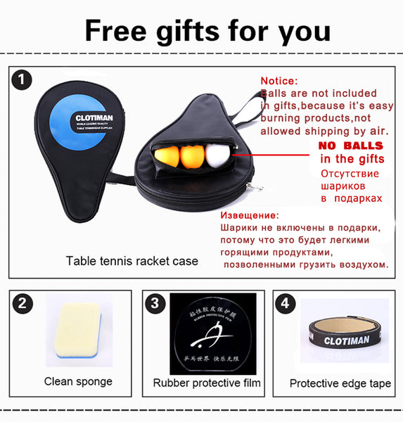 Rubber: Pimples InBaseboard Layer Number: 9Model Number: TYPE ABCBrand Name: CLOTIMANWeight: Heavy Tip Light Handle (Offensive)Size: 158*152mmBottom: woodGrip Means: straight grip horizontal grip